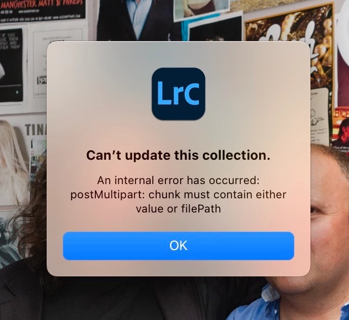 If I create a collection with a lot of images (in excess of 80 for example), and publish them, Lightroom 13 (and 13.01) gets so far and fails with the following pop-up error message: