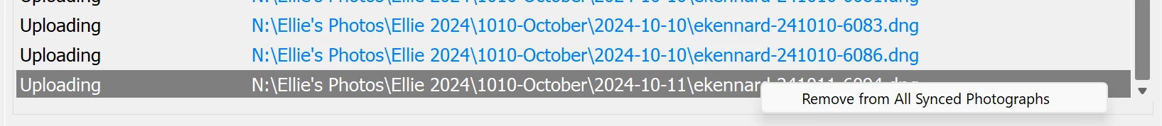 I have tried removing a couple of photos from that synced collection and then adding them to a different synced one. No change. They show as syncing in the new collection but don't appear in the app or browser.