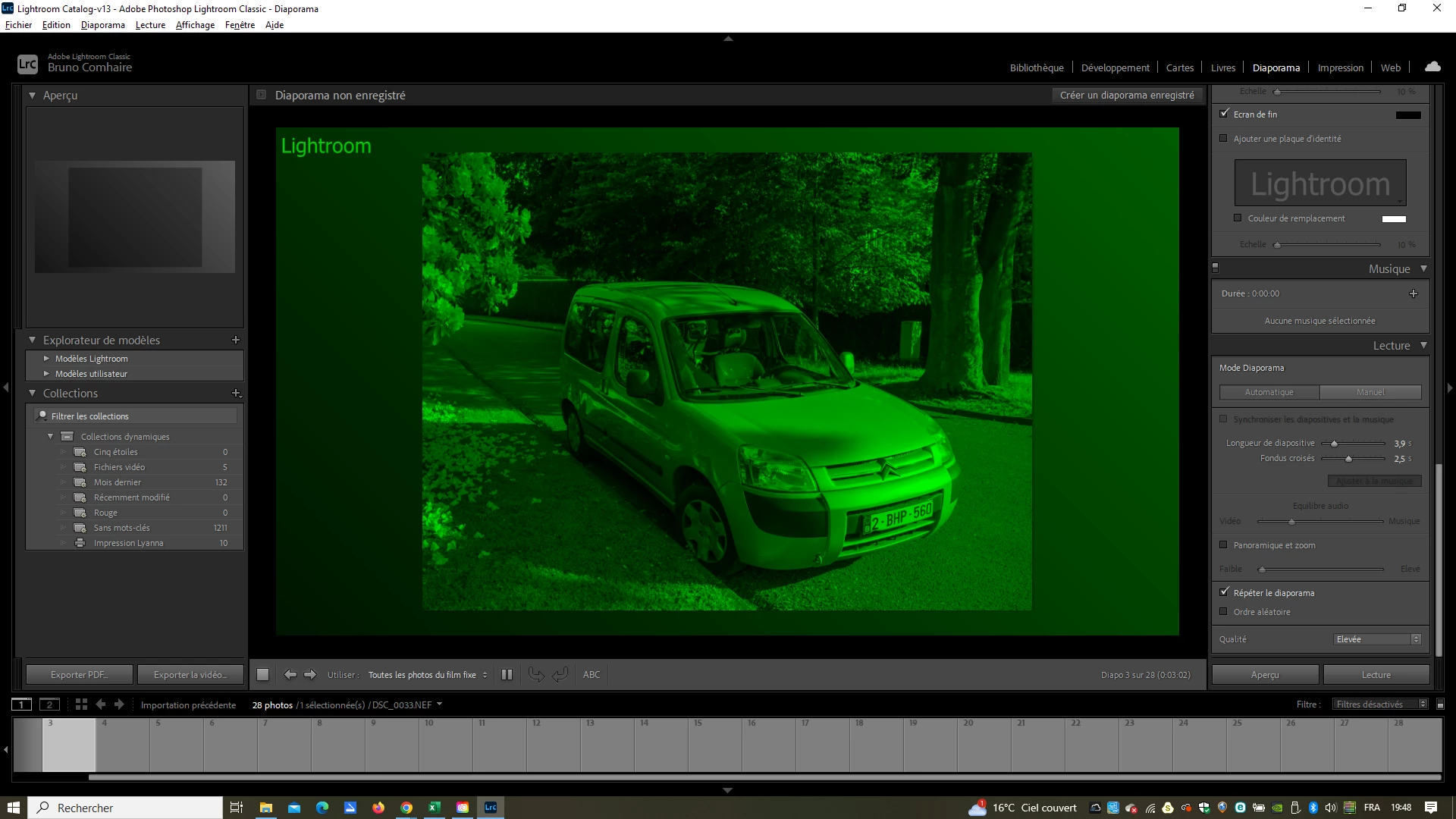 2° quand je charge des photo dans le diaporamma elle apparaisse dans les teinte verte !