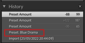 2. It would be great to have a note in history what preset I applied for multiple photos, currently I see only "Paste Settings" note and I often don't remember what preset I used.