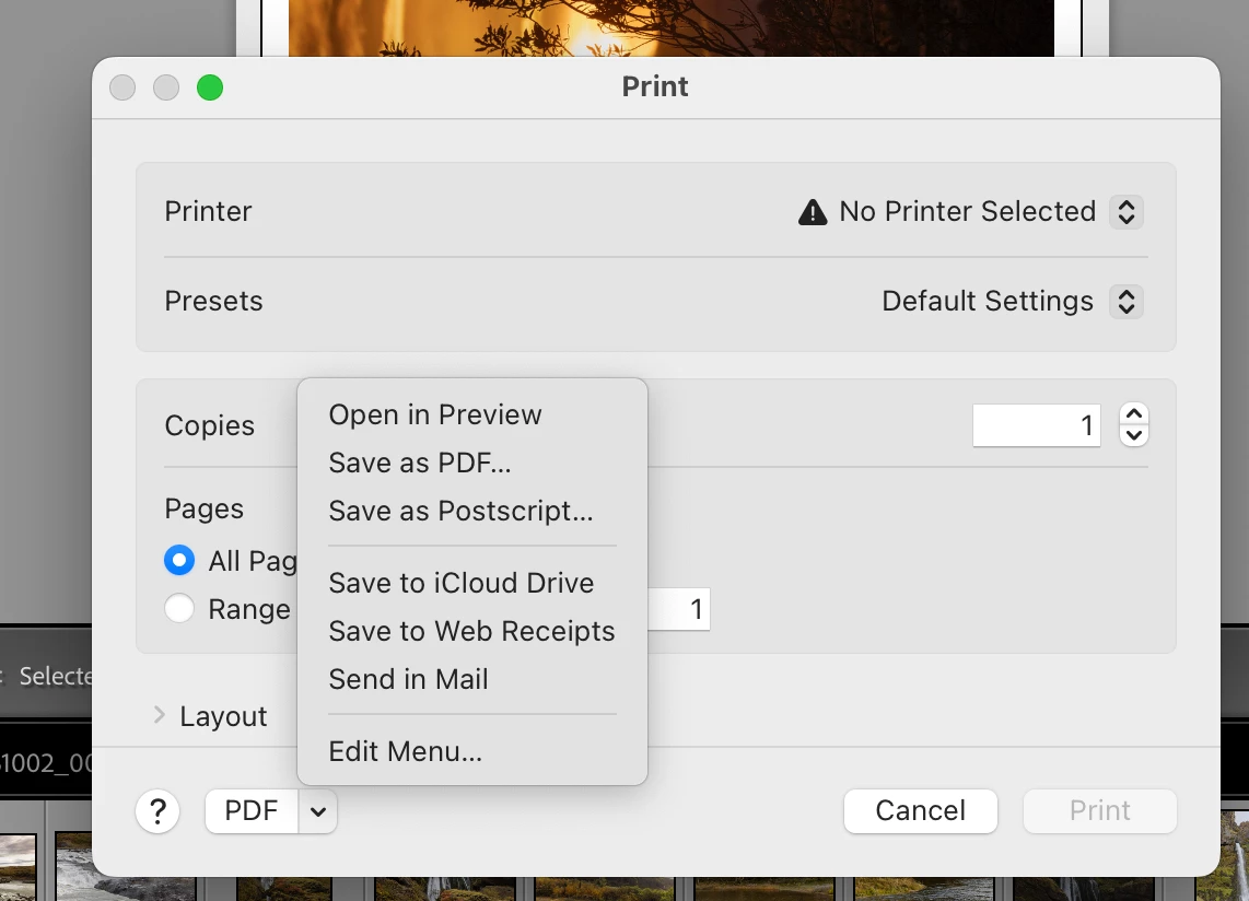 print contact sheet to PDF