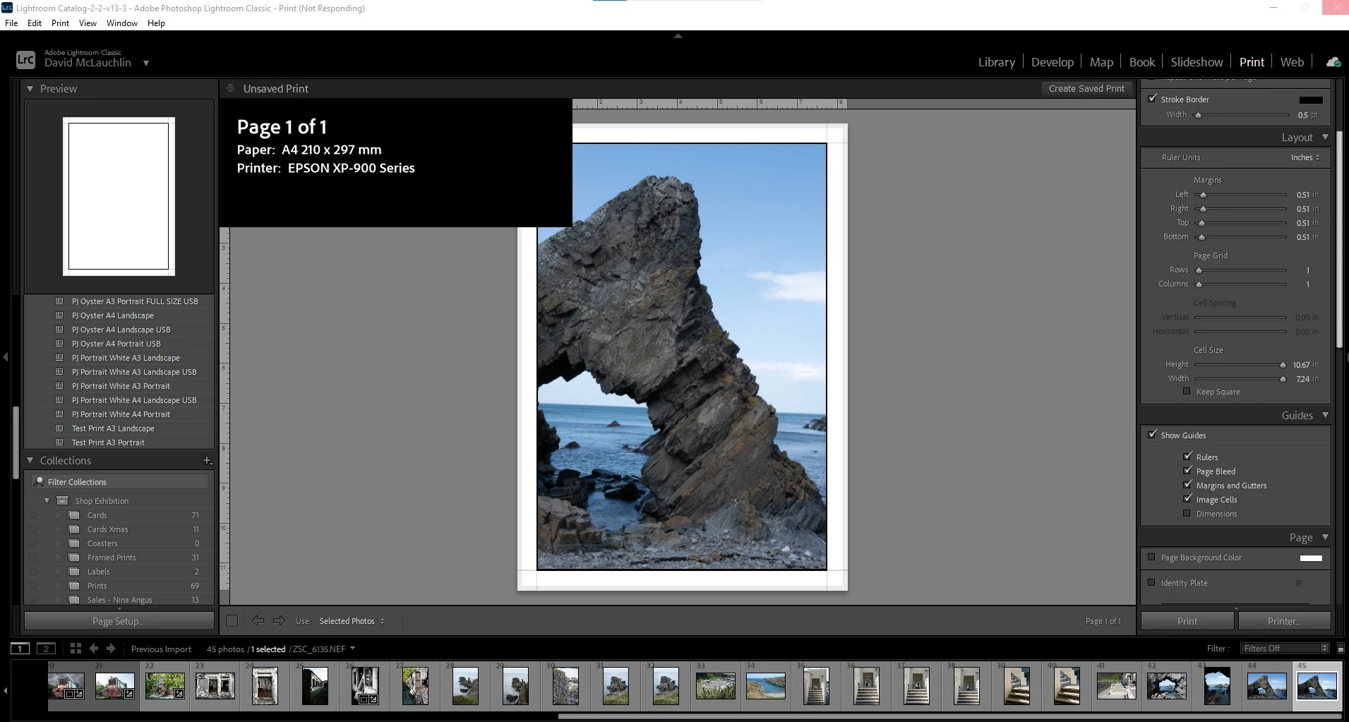 Since LrC was updated to 14.4 (Windows 10) it is crashing when the right hand side scrollbar in the Print Module is used. It shows a white on black popup with Page 1 of 1 and then goes into "not responding". Nothing else has changed on the PC.