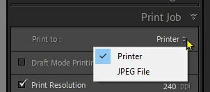 I go to PRINT in lightroom classic and it says "print to file", how do I get out of this so I can print a photo.