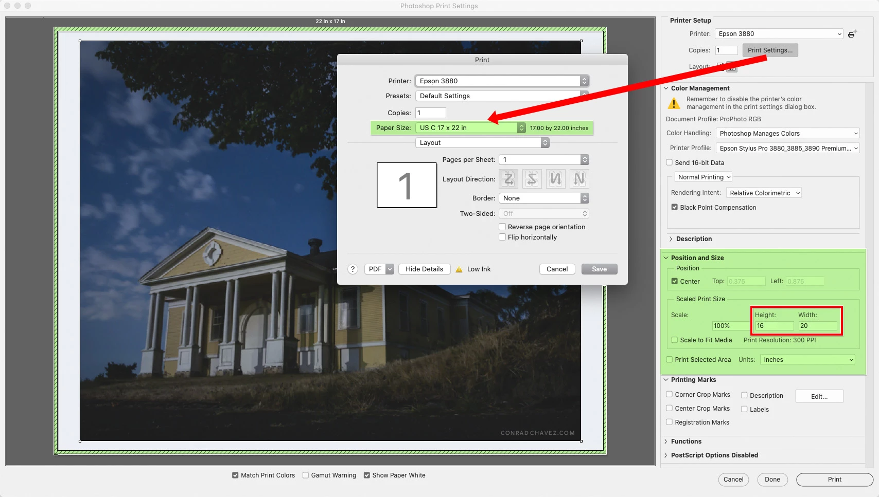 I don't print my own work, but my friend does my printing for me with Lightroom Classic (Latest version). He runs into a problem whenever he prints larger pieces out of his printer. He prints with an Epson P800. This is a quote from his latest email correspondence with me. It's difficult to troubleshoot if the problem lies between chair and desk or with Lightroom itself, so I thought I'd ask the question here. It might be difficult without seeing his step-by-step process, which obviously I can't give you. So, here's the best I can do.
