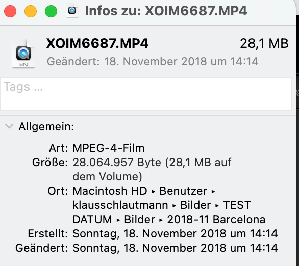 If I select a video and klick on "show in finder" the file itself has the correct date/time stamp.