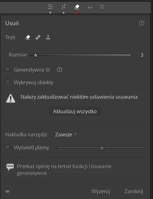 Hi, for over a month I have an issue with spot removal tool. I have over 500 photos with small dust spots from scanning, so I cleaned all of them with delete spot removal and since then whenever I restart Lightroom I have to update them. I didn't use generative AI, so I don't even understand why I have to do this.
