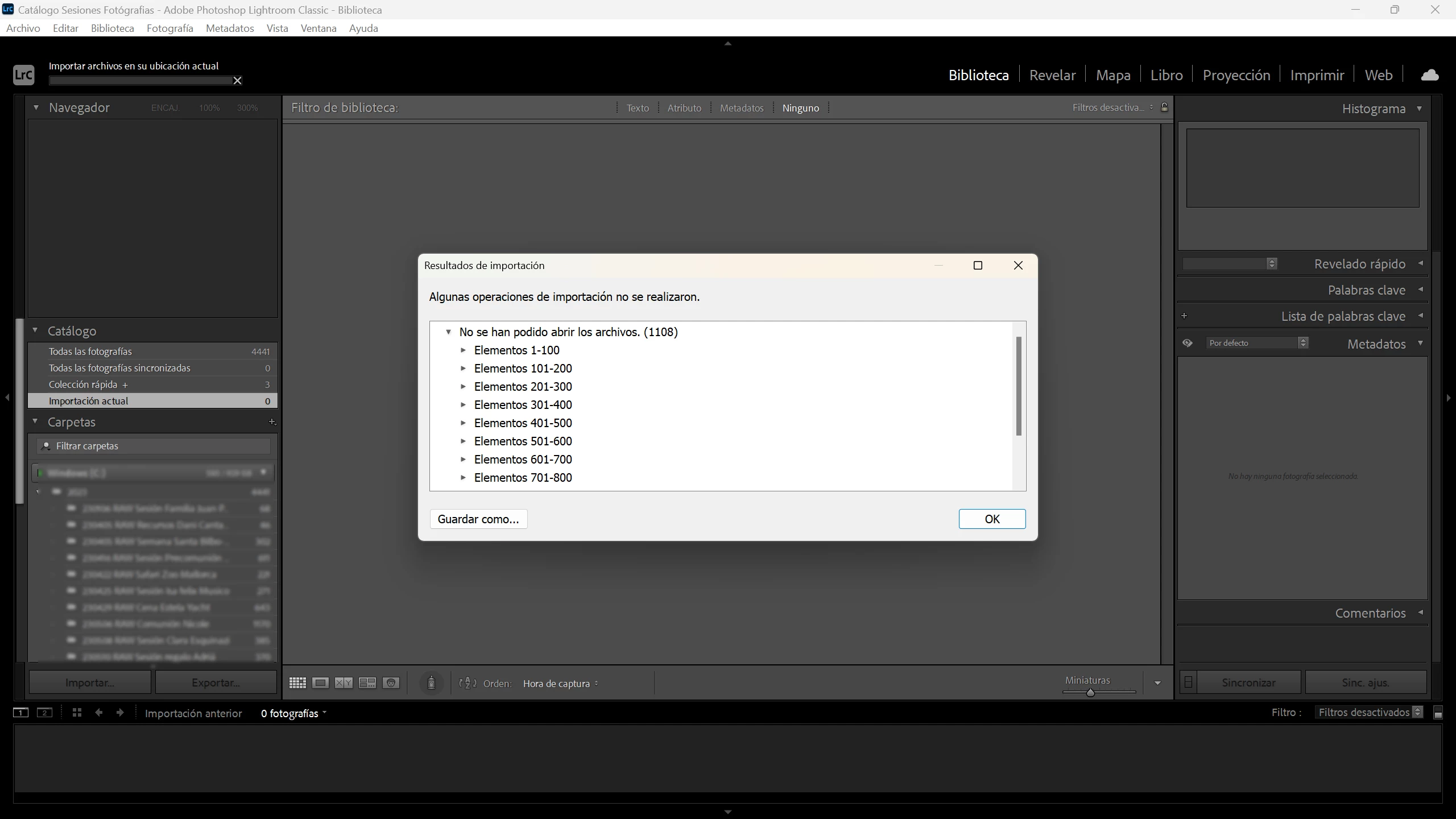 Problema al importar fotos con lightroom desde nas synology
