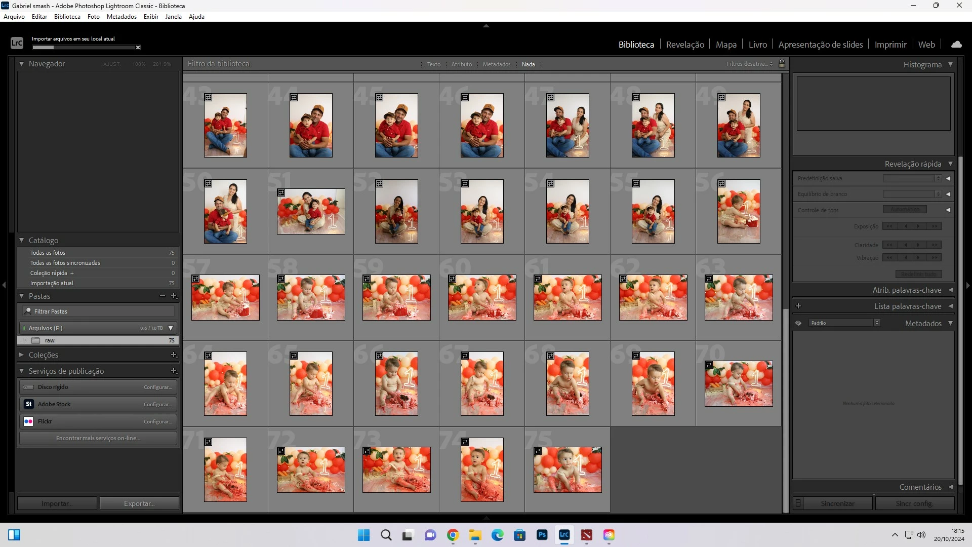 Ele fica importando as fotos, mas trava em 75 fotos.