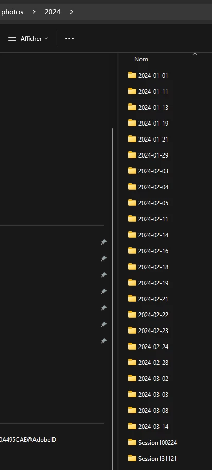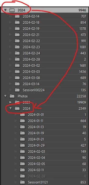 Mon dossier 2024 est fractionné en 2 sur lightroom: