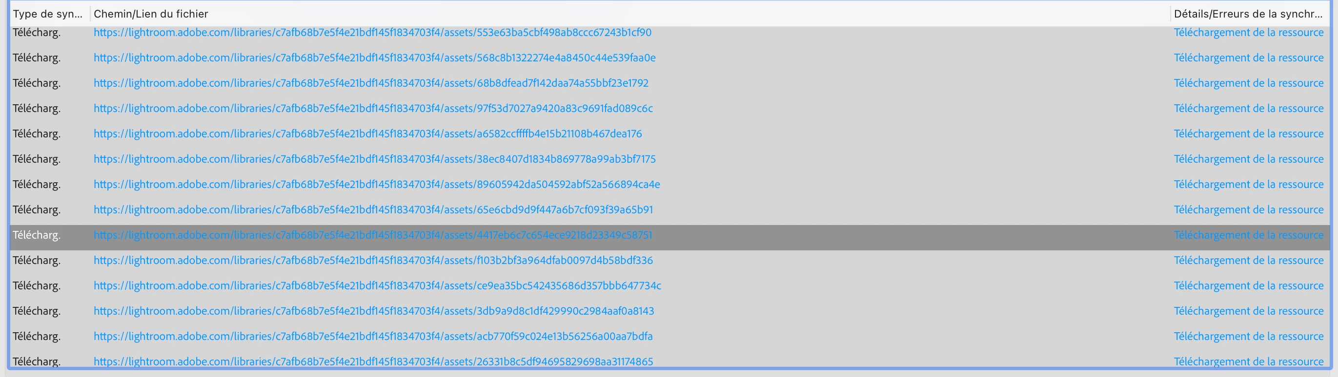 J'ai décider d'ouvrir un nouveau catalogue dans LR histoire de repartir à 0, mais voilà qu'il s'est mis à télécharger 49566 éléments, dans la fenêtre de roue cranté, cela indique téléchargement des ressources de la librairie adobe en ligne. Lorsque je clique sur une ligne ça m'envoi sur LR en ligne (internet) et sur une photo que j'avais dans le précédent catalogue.