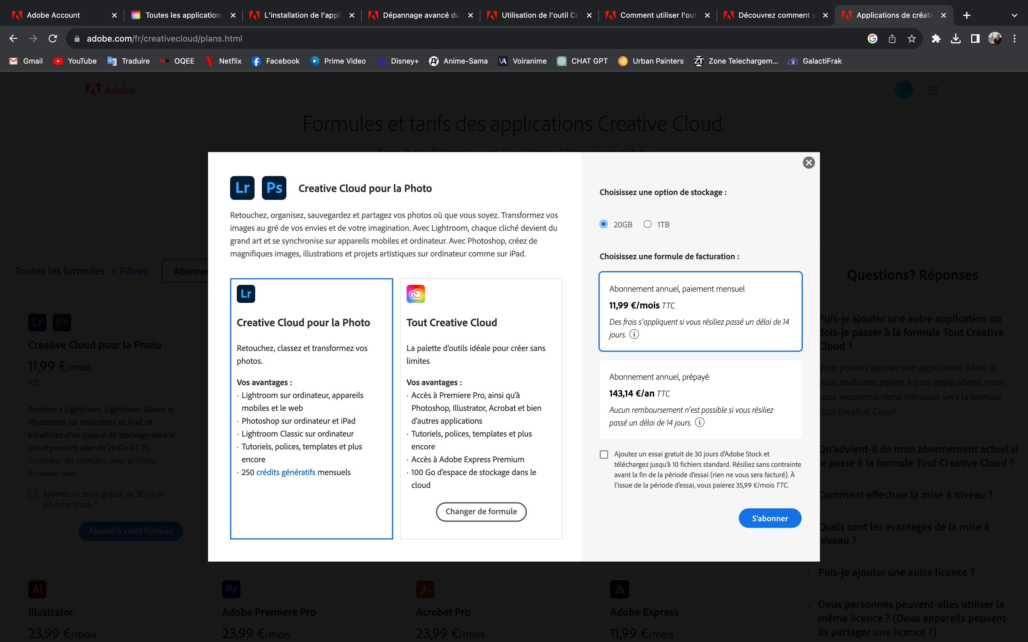 Bonjour, j ai souscrit à l'abonnement a 11.99€ pour profiter de lightroom et photoshop. Mais le probleme c'est que apres avoir installé creative cloud, les 2 logiciels ne s'installent pas... ca me dit constament que lightroom est un cour d'instalation, mais rien ne se passe.