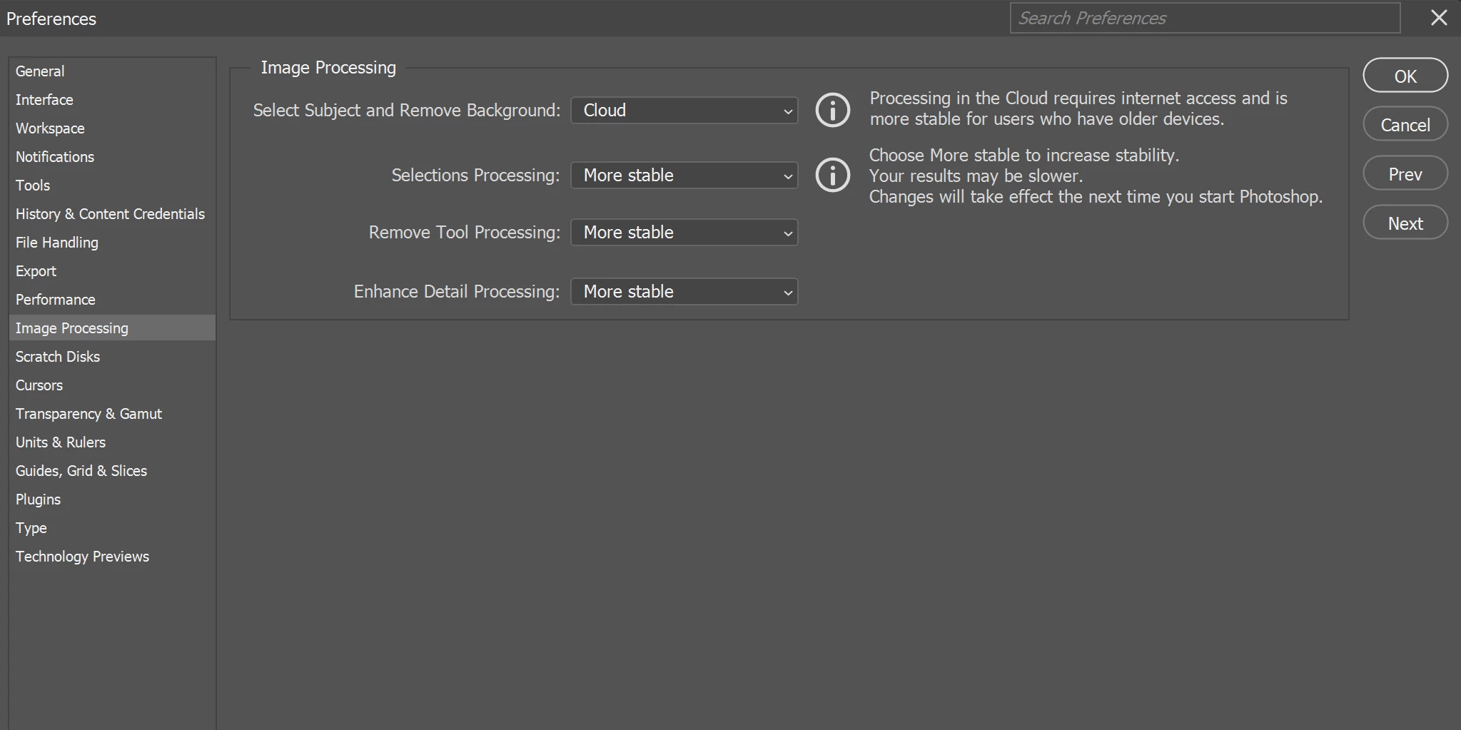 5) Try the Photoshop preferences configuration as seen in the image shared.