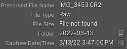 - Many photos indicate "file not found". If you right-click and select "Show in Finder", it will point to the photo, so the software knows where it is.