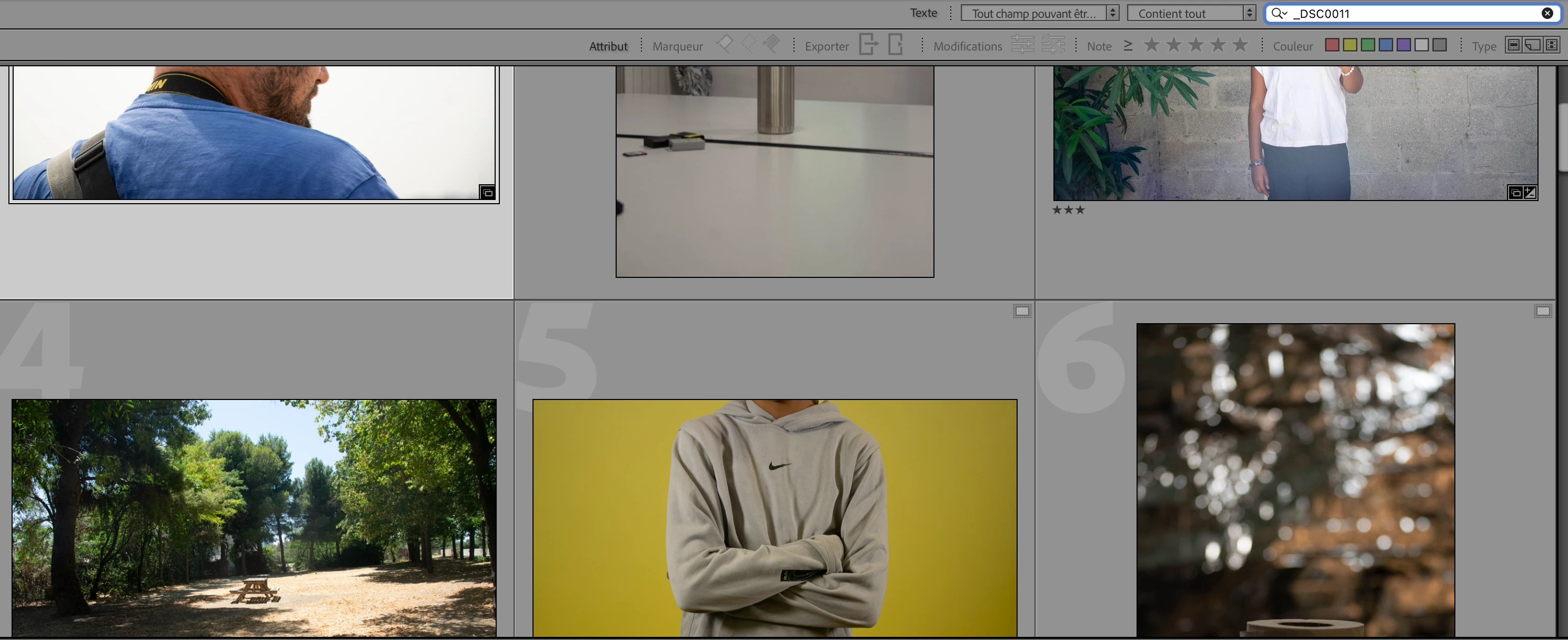 Donc même en recherchant par nom de fichier, j'ai plusieurs images de différents projets qui apparaissent je ne peux pas retrouver toutes les images d’un coup car elles ne s’enchainent pas dans le catalogue.