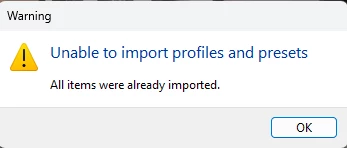 When I try to import profiles, that are not shown I get an message that profiles are already imported.