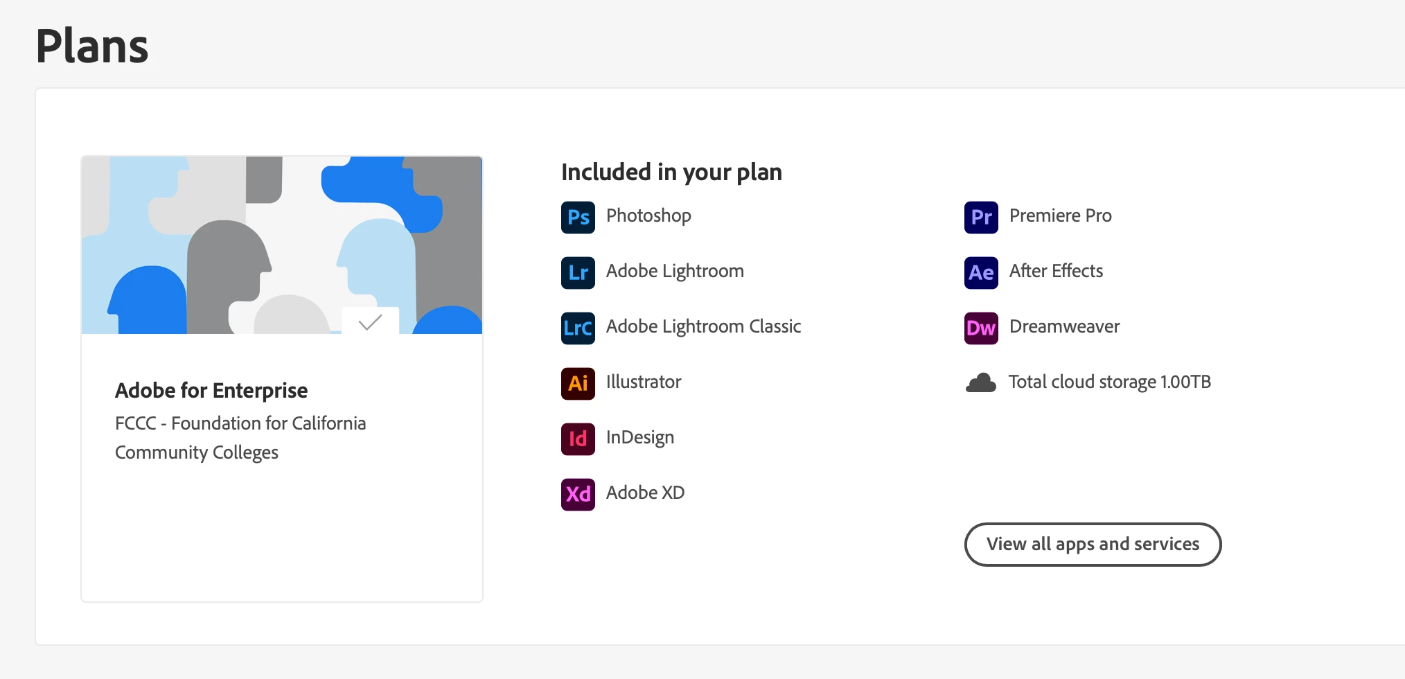 I am a Community College Art teacher and I have an Adobe for Enterprise subscription. The plan indicates I have 1 TB of storage but when I use Lightroom Classic it only shows that I have 100 GB of Cloud storage. Can someone explain to me this discrepancy? I've included a screenshot of the web page with my plan shown and a screenshot of Cloud Storage for Lightroom Classic.