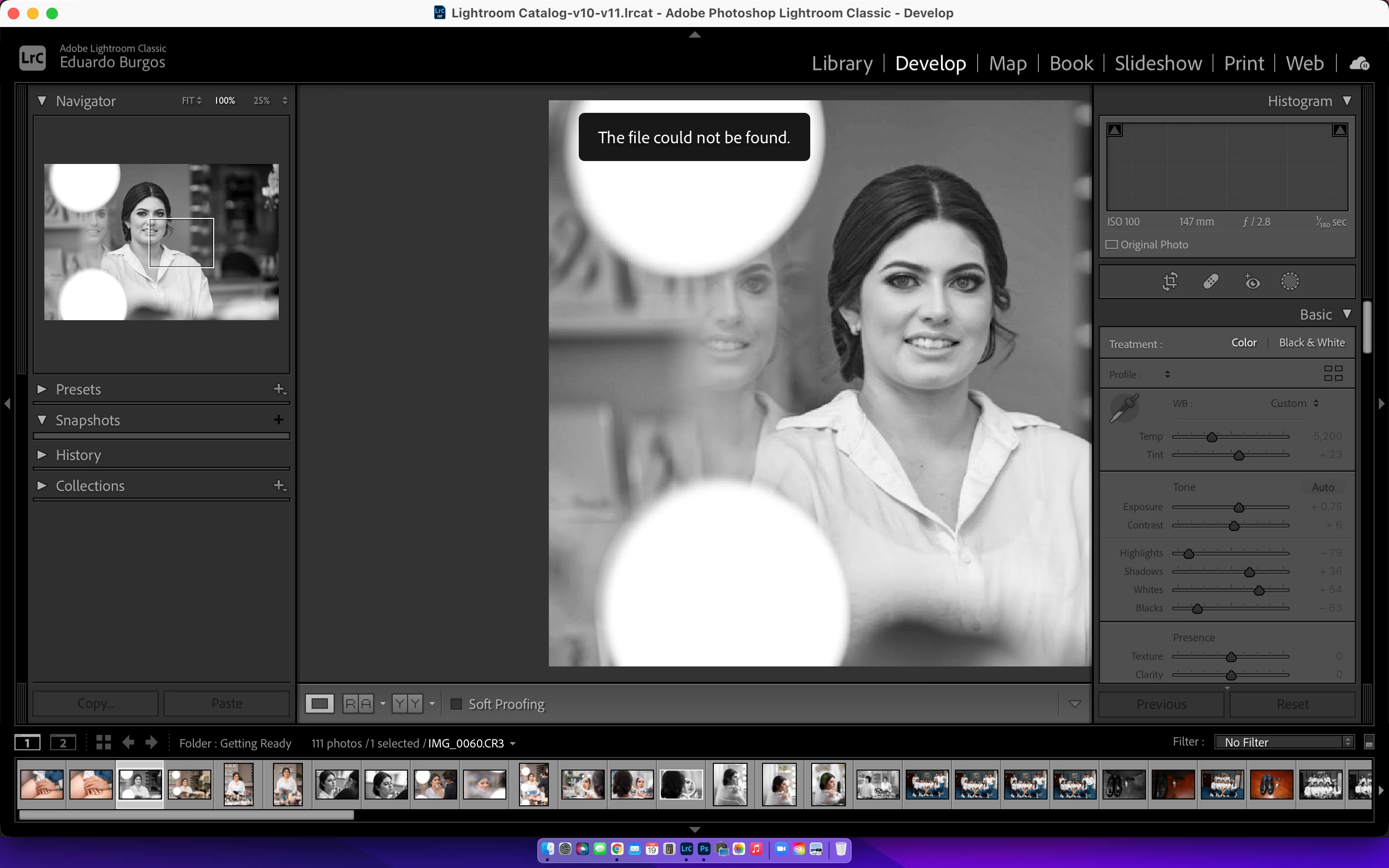 When in 'Develop' all of my presets are gone and each photo says 'file could not be found' even though the originls are all in the same place as they have been for the previous 2 years. Also all of my presets are gone.