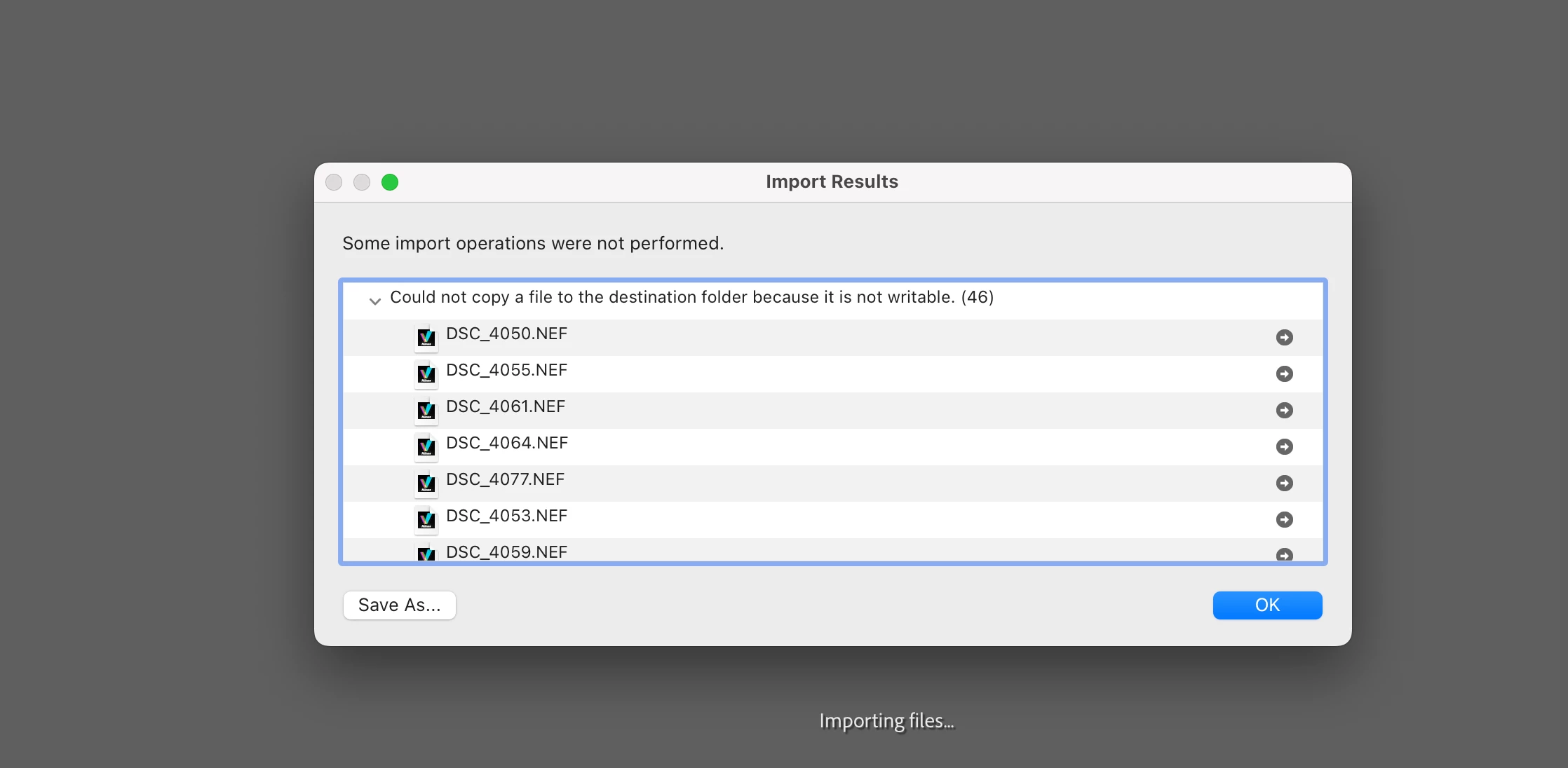 I have tried to import new images directly from my XQD card and when I do so I get a pop-up telling me that some import operations were not performed (because it is not writable). Again, it's the first time i've had this problem and I'm not sure how to fix it.