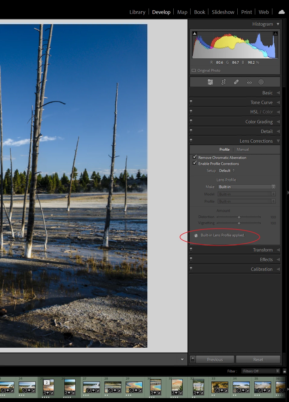 Raw images from the X-T5 are not loading the built-in lens profile until the image is zoomed to 100%