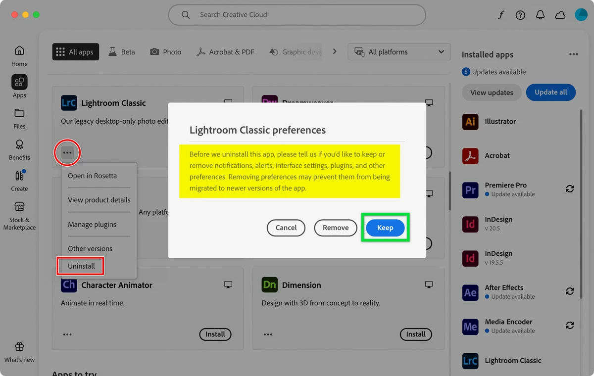 Hi, What's the best way to un-install my buggy copy of LR Classic and reinstall a clean version on a Macbook running Sequoia, without losing my catalogue, presets etc. Thanks