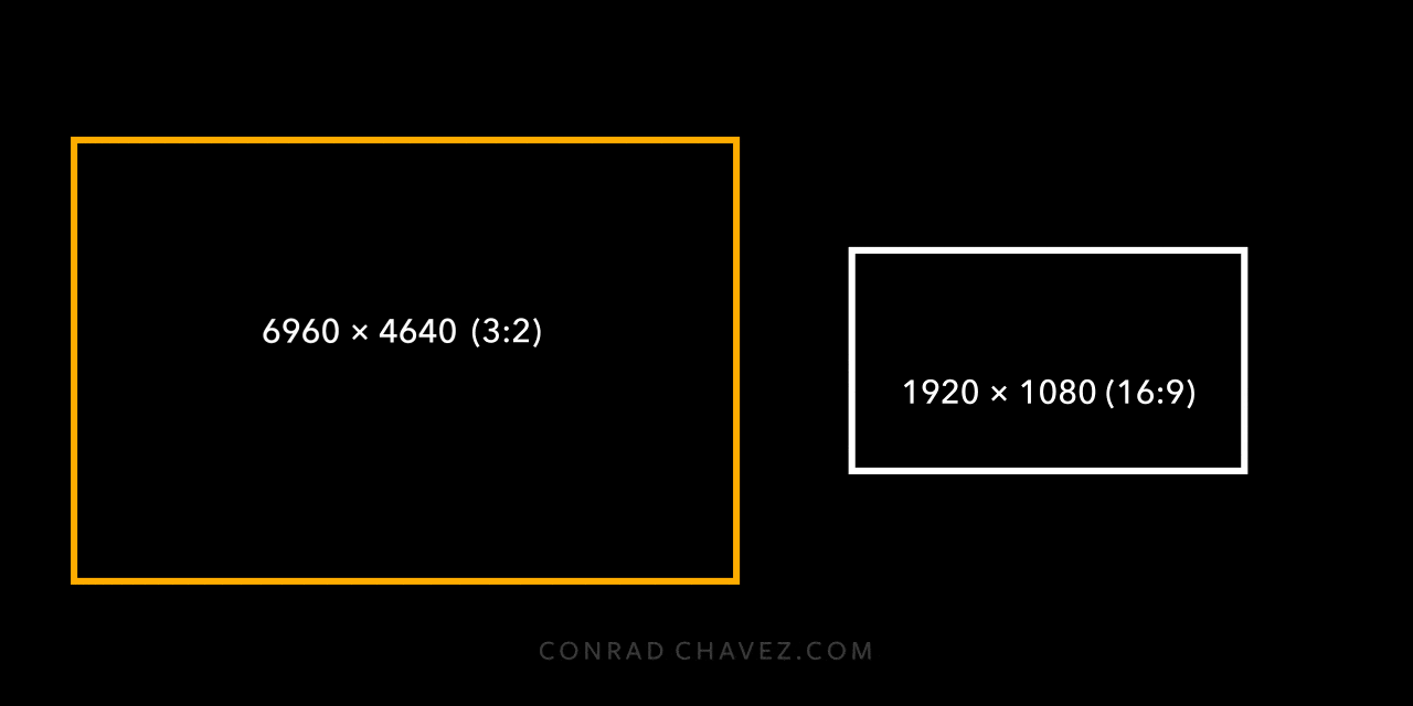 OK, then the animation below should help explain exactly what is going on, it’s a different way of showing what Rob_Cullen already illustrated. As ExUSA said, 6960 x 4640 px works out to a common 3:2 aspect ratio digital camera sensor frame, while the 1920 x 1080 px dimensions you’re exporting to is a different 16:9 aspect ratio frame commonly used by HDTV.