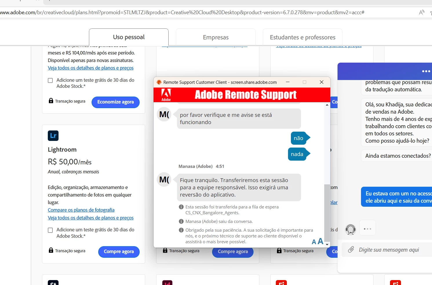• Já entrei em contato com o suporte via chat duas vezes;
