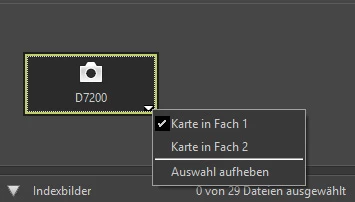 Hello, my nikon d7200 has two memory card slots. Thae camera is configured to store raw files in slot 1 and jpg in slot 2. With the "Nikon Transfer2" app i can select the slot (card) wich is used to transfer the images. The Windows explorer also brings up two devices when connecting the Camera.