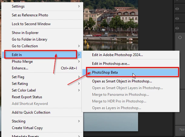 sending images from lightroom to photoshop beta