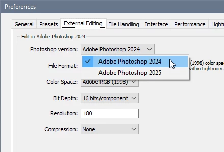 I have got Photoshop 23, 24 and 25 on my MAC. When I am in Lightroom and want to edit in Photoshop, using the 'Edit in' button, it takes me to Photoshop 2023. How can I change this so it takes me to the 2025 version? Thanks for any advice