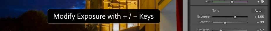 The quickest solution is to set keyboard focus back to Exposure by clicking the Exposure setting name text next to the slider. You’ll notice a brief overlay message that lets you know it took focus.