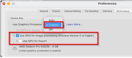 Dedicated GPU memory used by Lightroom: 203.6MB / 8017.0MB (2%)