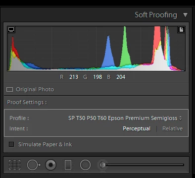 I'm on a Windows 10 machine, using Lightroom ver 7.5 Classic CC, desktop. In Develop module, there is no Soft Proof button to choose. Installed printer is Epson P800. When I'm in print module, I do see my paper profiles.