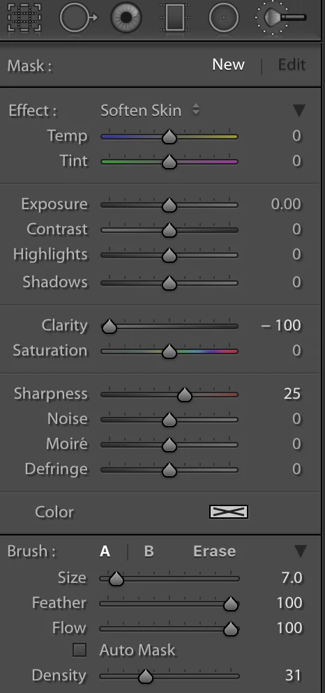 And no, the darkness is not just the gray mask overlay showing what skin I've painted over. The darkened area shows up after I click "enter" to see the final product after applying the brush. I used to have LR 4 and this definitely didn't happen. My soften skin brush used to work great. What gives? I can't figure this out. I want to remove the under-eye wrinkles, but instead the brush makes it look like she has dark circles under her eyes! Help!