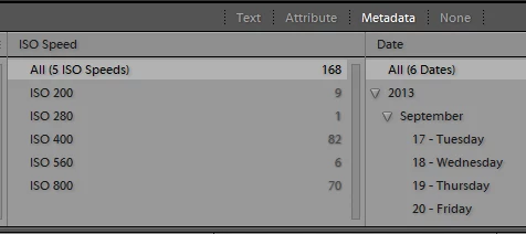 Given these considerations it seems odd that LR does not provide any help in locating the high ISO images in a collection or folder. Ability to sort on ISO would be extremely useful; alternatively, a way to filter on high ISO could serve much the same need. Neither of these options would seem to present much difficulty since ISO is recorded in the EXIF information.