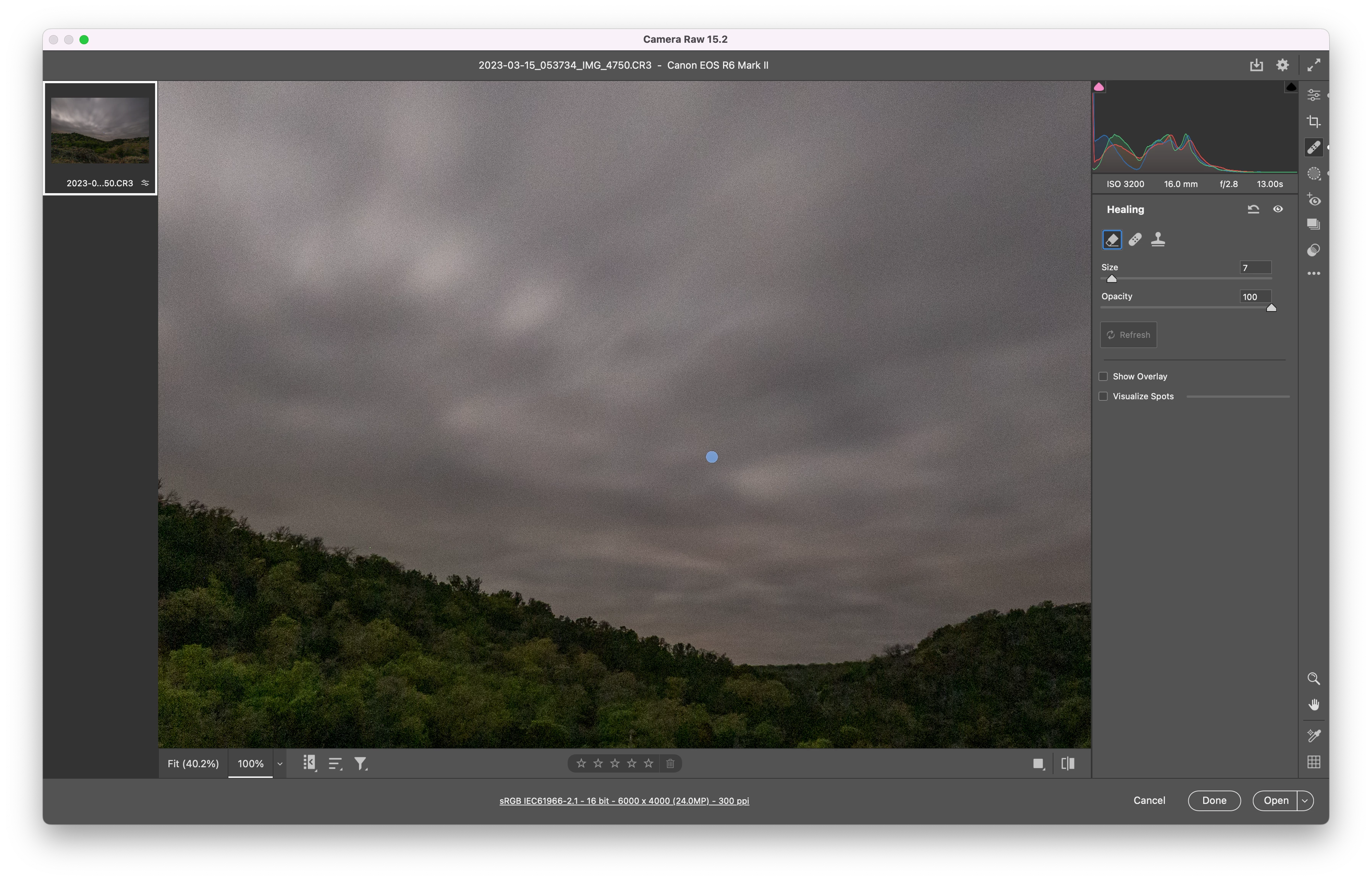 Spot Healing in Lightroom appears as Baked-in Blue Dot in Photoshop CameraRAW