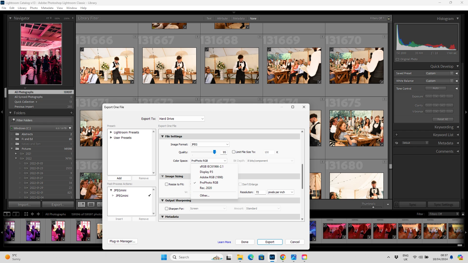 I just finished editing and exporting a whole wedding only to find they've all been exported in ProPhoto RGB or sRGB IEC61966-2.1