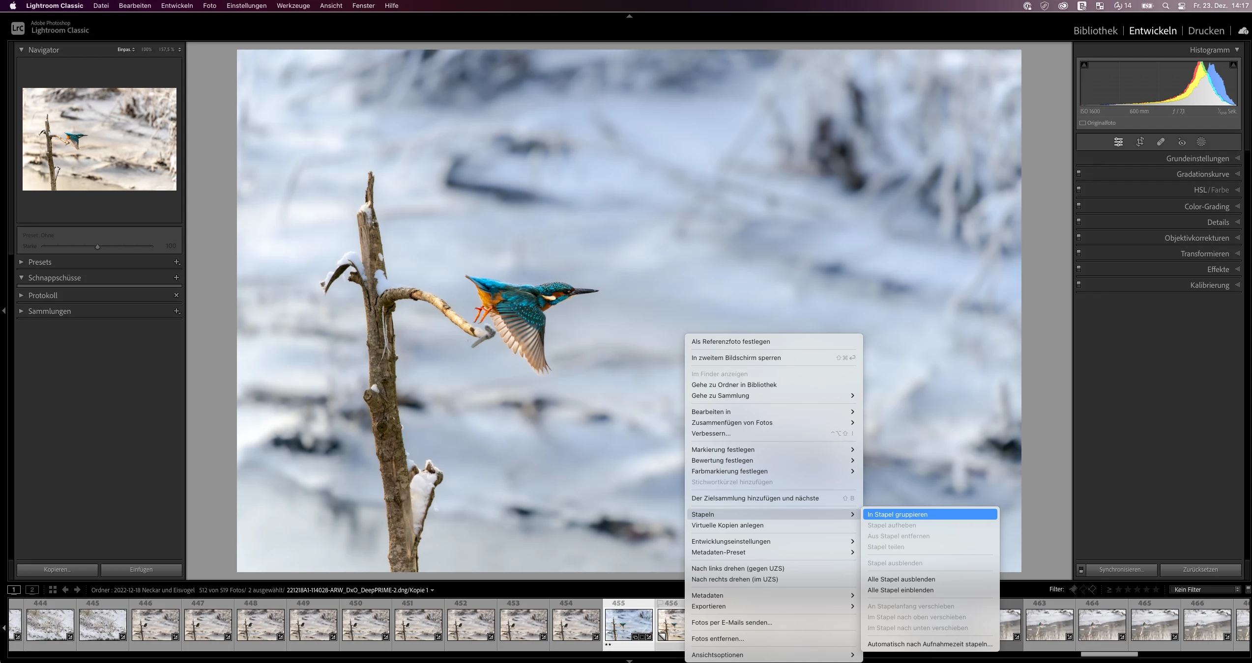 4. In the development module I can open the stack only via the context menu. Again, with the click on the icon "3" in the filmstrip the stack would not open or close.
