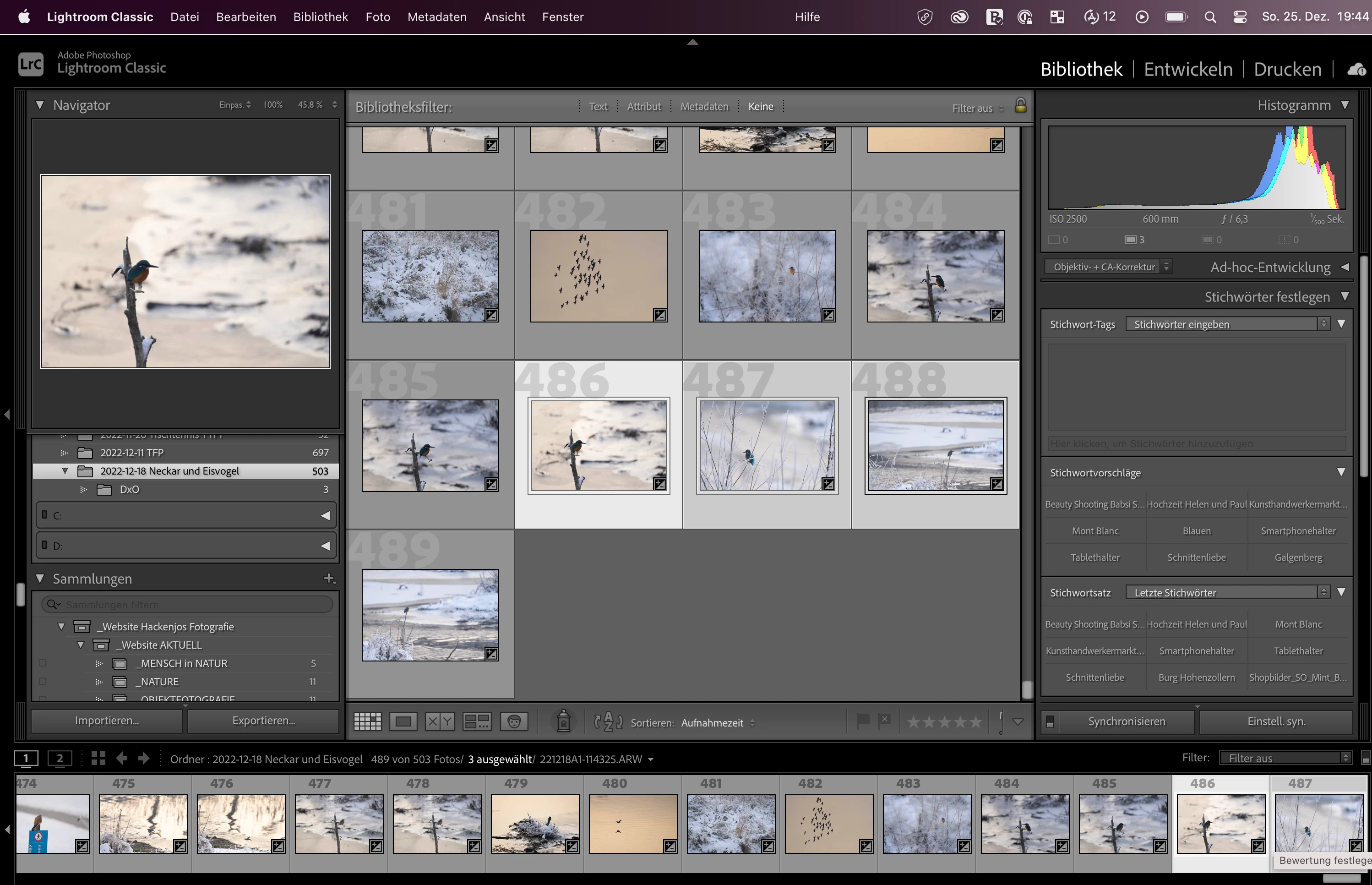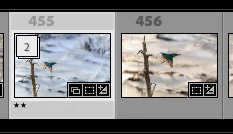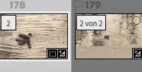 2. In the grid view I can open the stack either by clicking on the little icon "3" (showing that this is a stack of 3 images) in the top left corner of the first image of the stack or by pressing shortcut S: