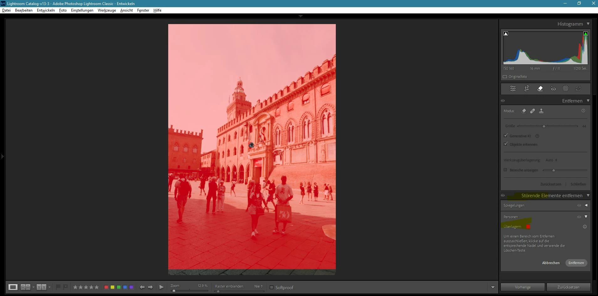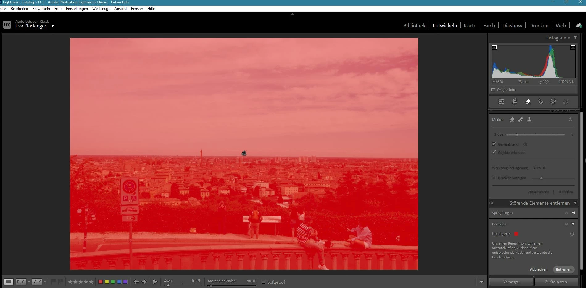 ich wollte heute die Funktion "Störende Elemente" entfernen und hier "Personen" ausprobieren. Egals welches Bild ich mit Personen wähle, es wird immer über das gesamte Bild eine "Maske" gelegt und keine einzige Person erkannt, egal wie deutliche diese zu erkennen wären.