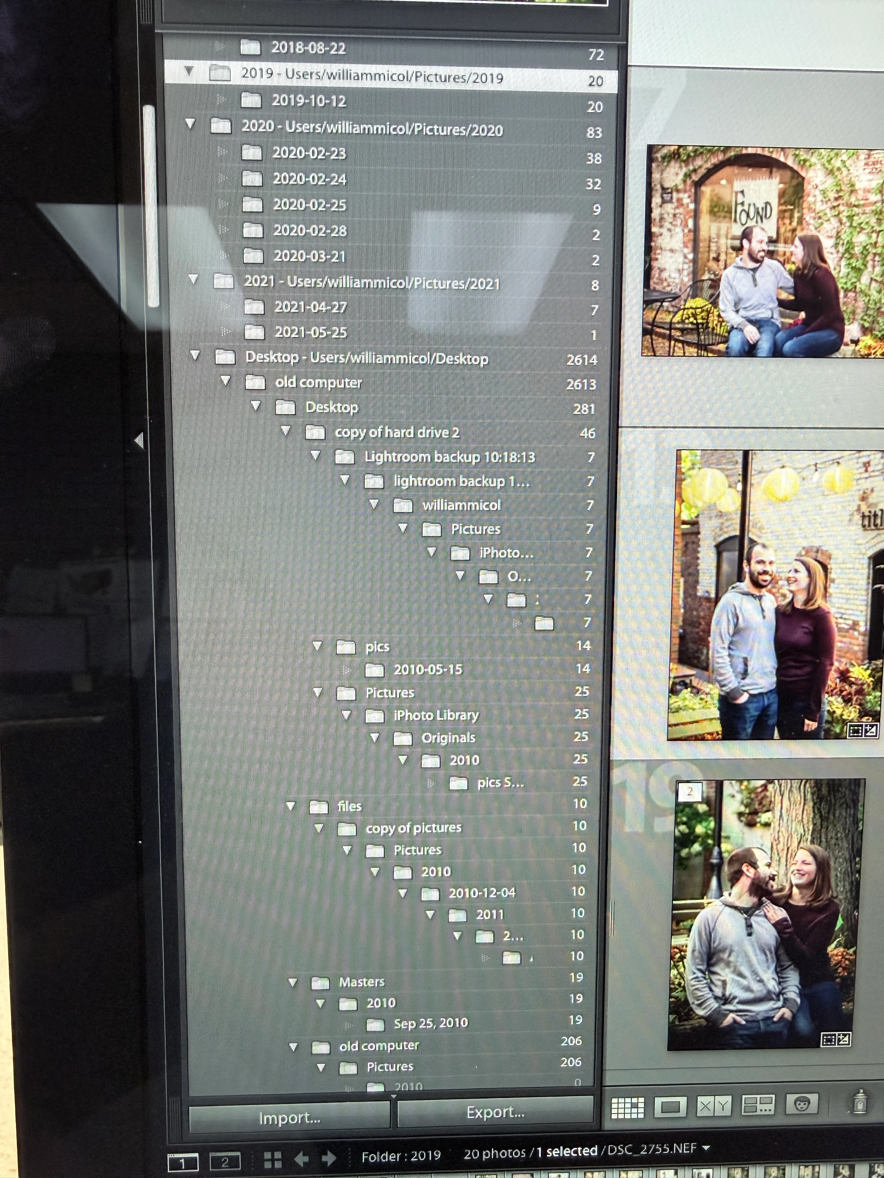 Several years ago, My hard drive failed and, long story short, at the time I did not have time maching setup. I did have an online backup and also had the repair shop try to extract as much data from the drive as they could. The problem is that all the folders got messed up due to the issues, and, my negligence and general ingnorance of how folders worked within lightroom. I finally just finished reconnecting the photos that were "missing" in Lightroom, but the problem is the photos are scattered around in various places on the computer. I want to be able to clean this subfolder mess up and organize it the way it should be before I export to new computer. Any guidance of the best way forward would be appreciated. See attached image...