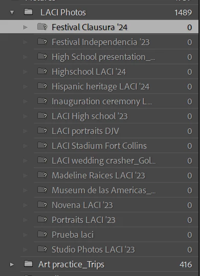 Thank you so much for the quick reply. The catalog is ~5k photos (4832). LACI photos is a folder on my external hard drive. I tried, as you suggested, to create a new catalog. However, the same error reoccurs with that folder's subfolders. Syncing or updating folder location for the LACI photos folder also does not work. Please advise