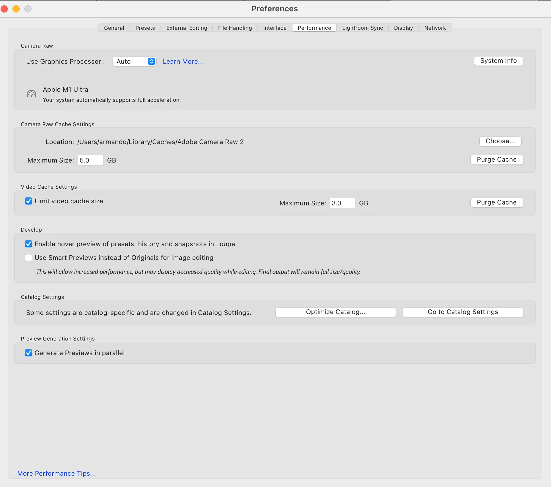 Settings Folder: /Users/armando/Library/Application Support/Adobe/Lightroom