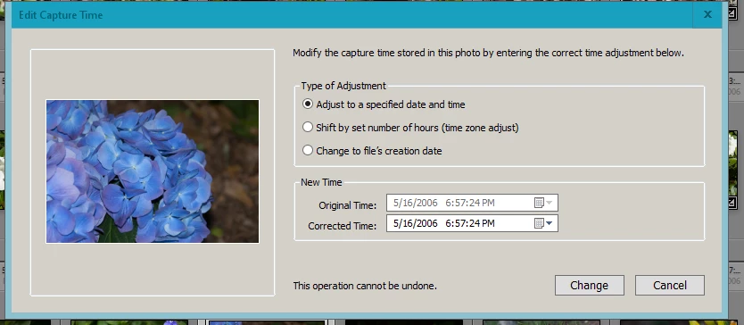 I think I have discovered a bug. When I mark 2 photos in Grid view i Lightroom Classic and press the Sync Metadata button and press the Syncronize button in the Syncronize Metadata dialog, the syncronization from the active photo to the otherone does happend, also the Capture Time attribute.