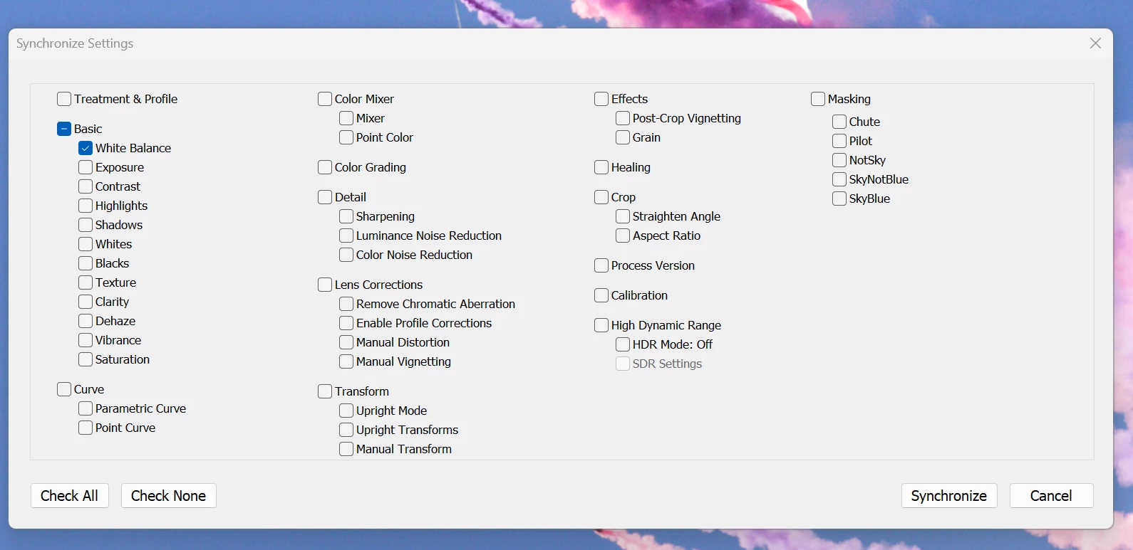 I'm having problems synchronizing the white balance edits between two photos of a timelapse that I photographed. In the photo that I make the edits, I change the temperature and tint value. However, when I synchronize with another photo, these two values are different. In the "synchronize settings" window, I always leave all the boxes checked. I don't know if this is a bug or if I'm doing it wrong.