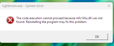 This error is directly related to Microsoft Visual Studio. I see no need to reinstall Lightroom