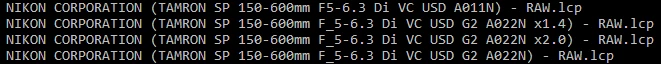 There is a tamron 150-600 G2 in Lightroom. But that is a other one i think.