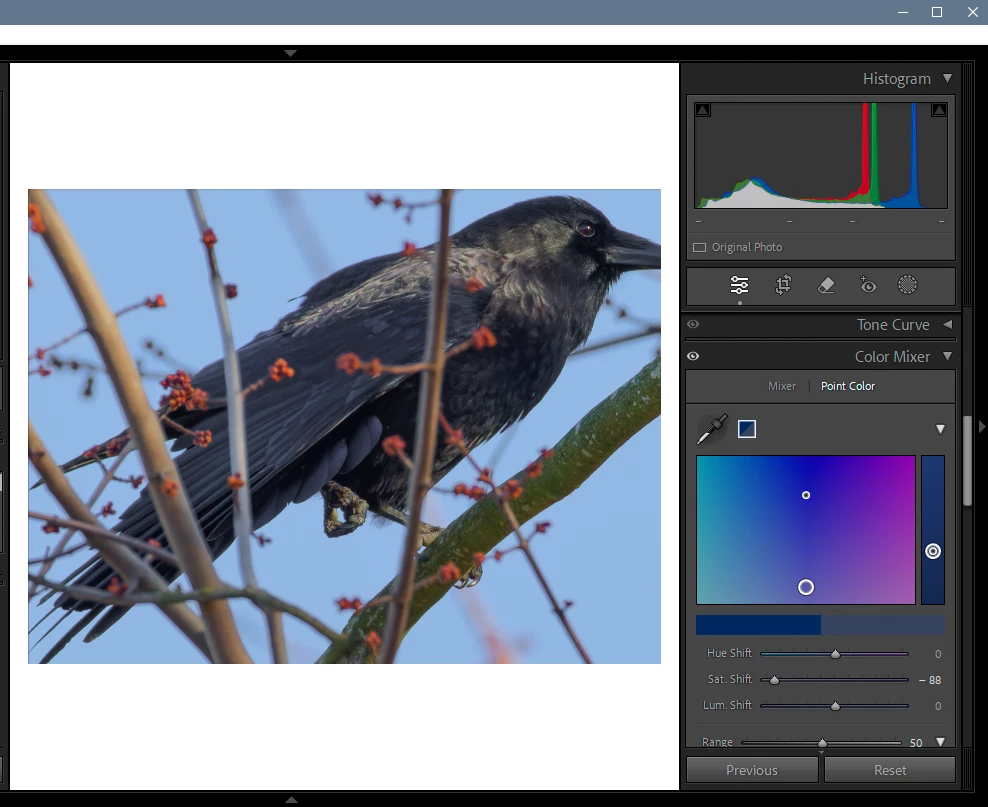 I need to learn how to work with color in selected areas of a photo. I see videos excaiming how good the targeted adjusment tool is but where is it? I'm in develop mode in Lightroom Classic and the panels show color mixing and color grading but nothing that looks like what I think I need. Has this panel and the feature been eliminated? My aim for asking this question: Example photo shows blackbird with excessive blue in one area only after I tried to lighten the shadows. How would the experts here tackle correcting for the blue to make this look like a more natural blackbird pic?