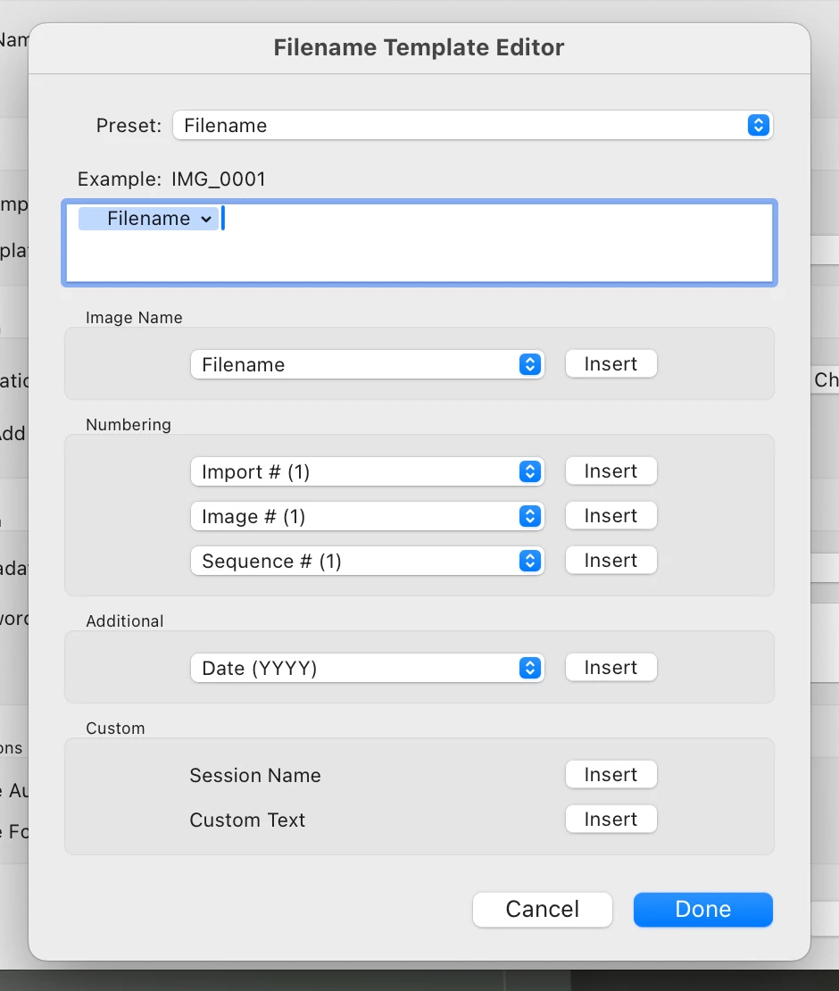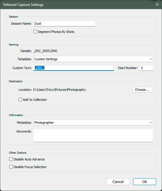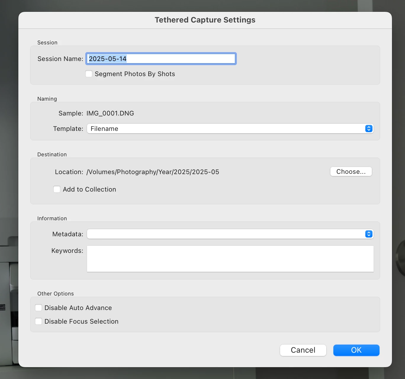 Tethered shooting file name