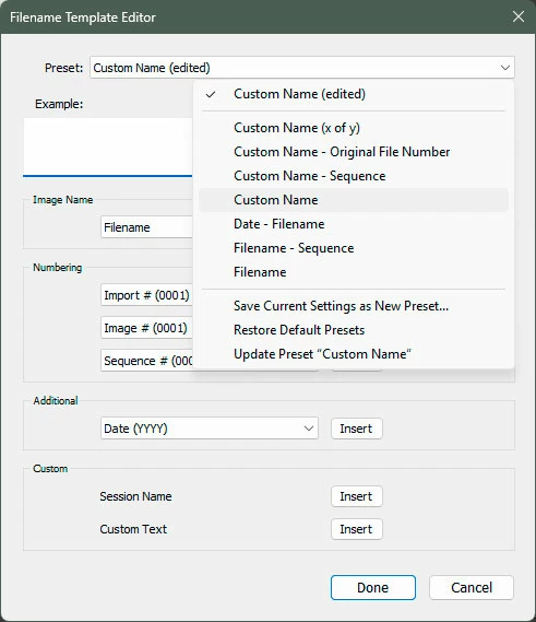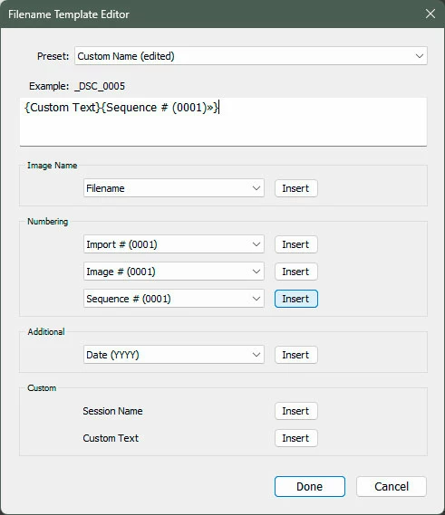The file naming template is set to Filename and the camera colour space is set to Adobe so I would expect a filename similar to _DSC1234 but, what I get is DSC_0000 followed by DSC_0000-2, DSC_0000-3 etc...there are no duplicate files anywhere.