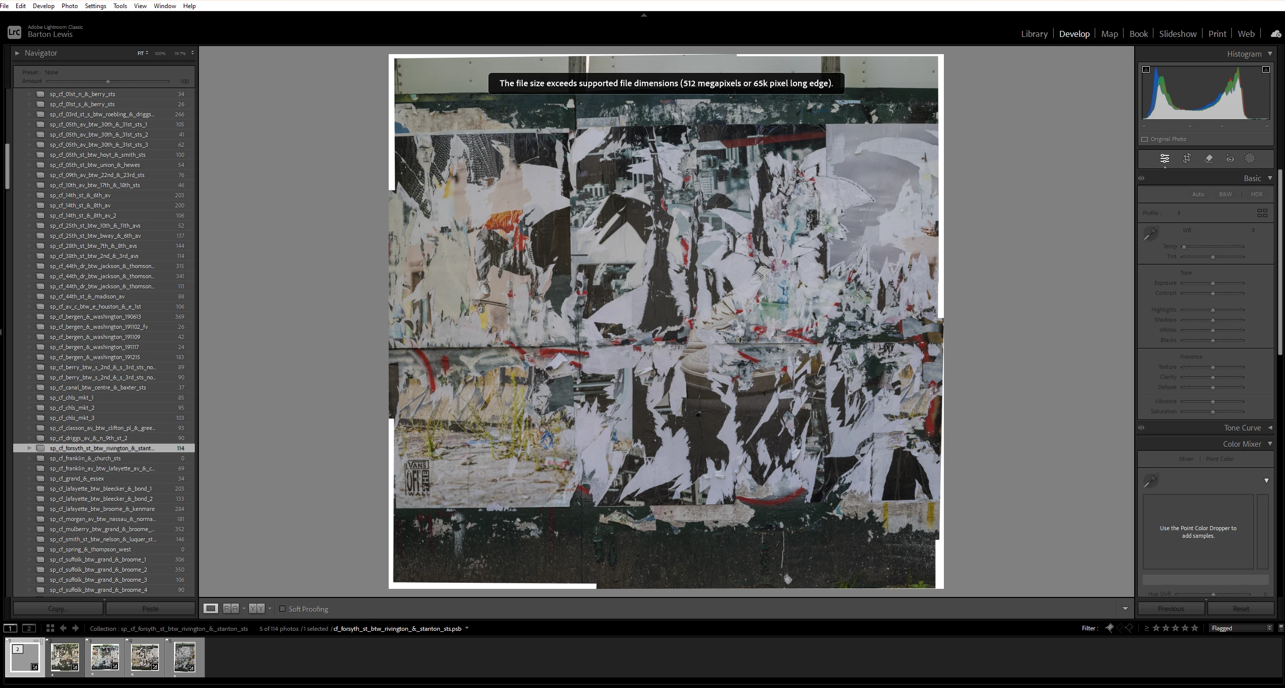 Does Lightroom have new file size restrictions? I received this message when compositing images. I have been doing this for years and have never gotten this message. I'm quite sure this is not the biggest file I have ever composited in Lightroom. I'm not sure as a practical matter if this is an issue as I'm editing the image in Photoshop and the final file willl be a PSB. Thanks for any thoughts.
